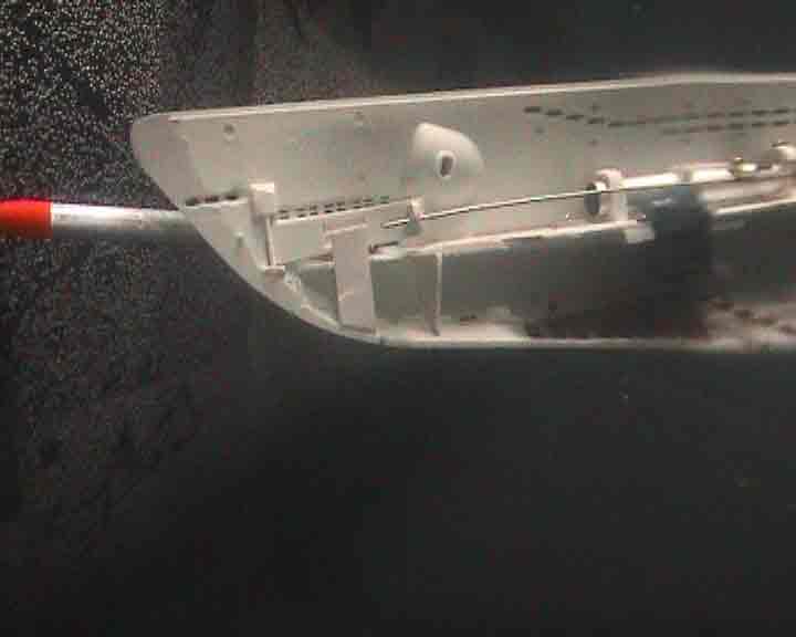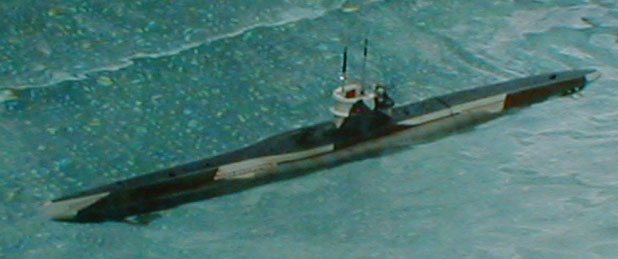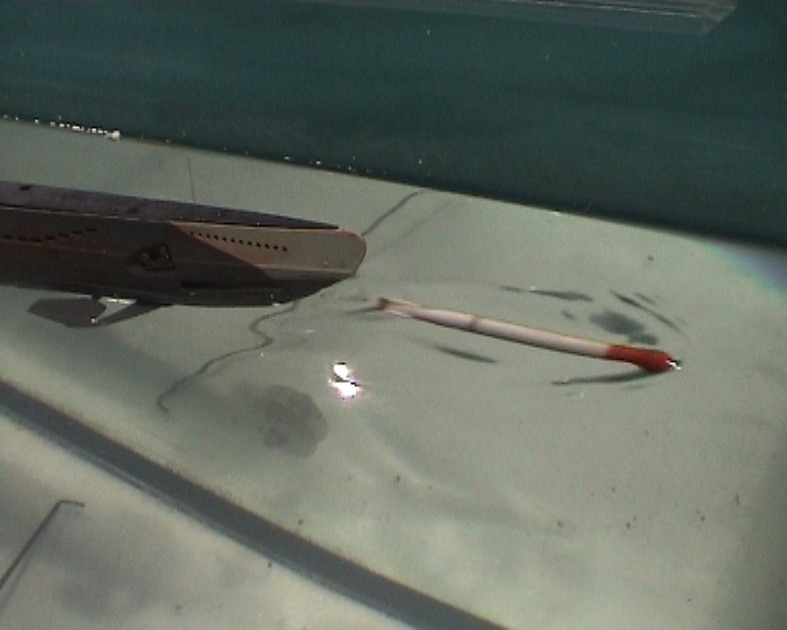 Der Torpedo läuft gewollt an der Wasseroberfläche, damit er bei der Größe überhaupt gesehen wird (1:72) |