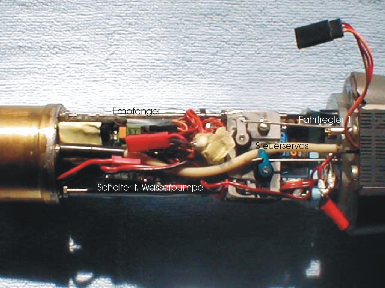 die beiden Antriebsmotoren und die Servos für Tiefen- und Seitenruder |